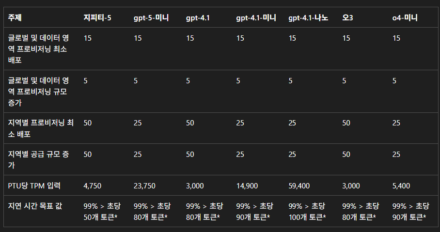 1 PTU당 TPM : 15000 TPM (모델마다 PTU 당 TPM 다름)