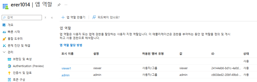 - 앱 역할을 따로 admin, viewer로 만들어준다.